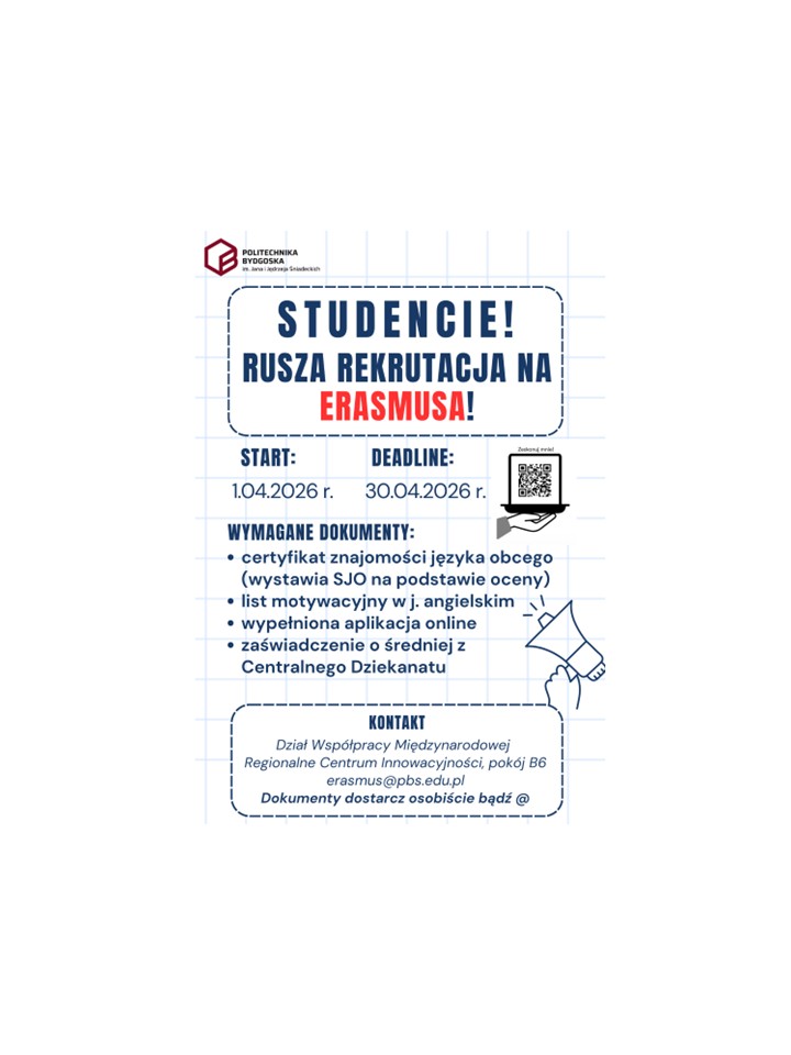📣 Rekrutacja na program ERASMUS+ na rok akademicki 2026/2027 już ruszyła!